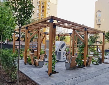 Pergola mit Sitzplätzen – neuer Wohnkomplex